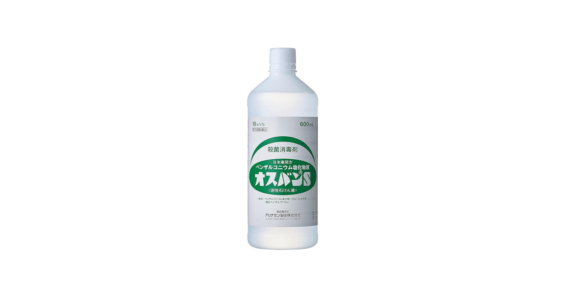 オスバンSは、ベンザルコニウム塩化物を主成分とする第3類医薬品です。この成分は陽イオン界面活性剤の一種で、「逆性石鹸液」とも呼ばれています。オスバンSは無色透明な液体で、特有の臭いはほとんどありません。